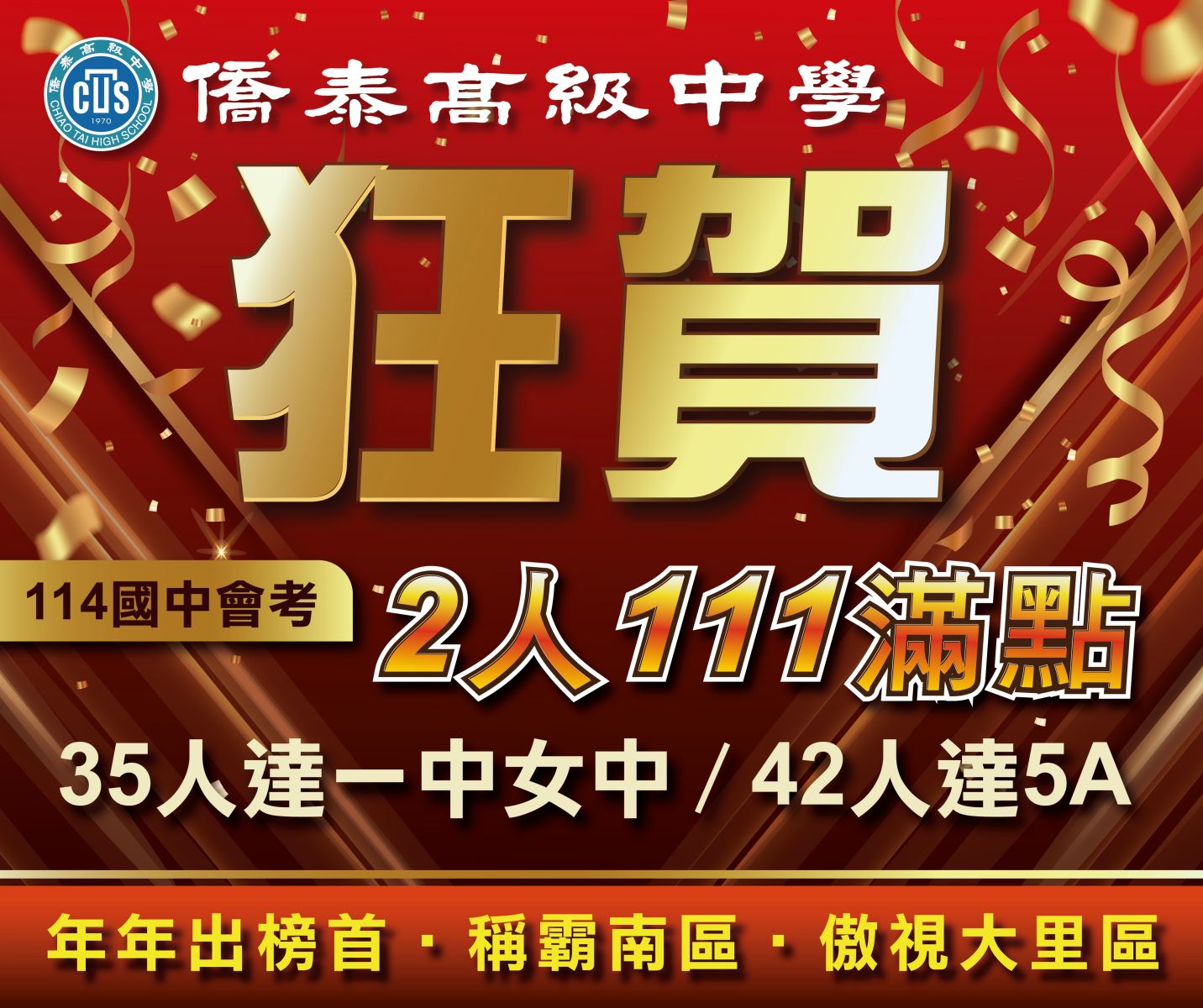聯合新聞網報導:114會考出爐台中僑泰2生奪全國榜首 曝讀書心法
